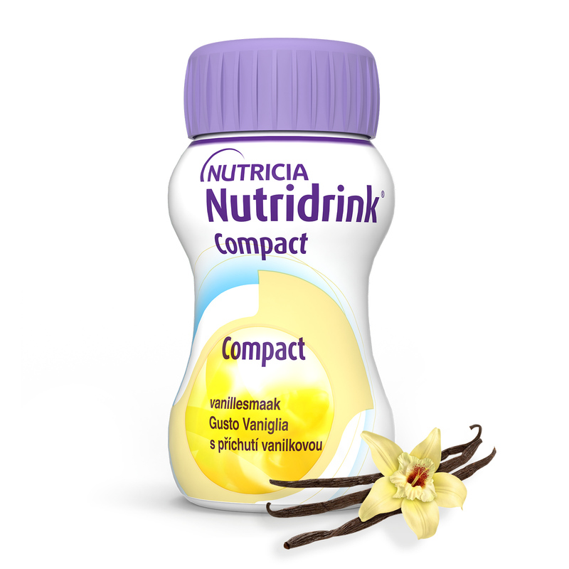 NUTRIDRINK COMPACT VANIGLIA è un supplemento nutrizionale pronto all’uso, completo ed ipercalorico (300Kcal per bottiglia), in volume ridotto (125ml) al gusto Vaniglia. Ogni bottiglia da 125ml contiene 12g di proteine.